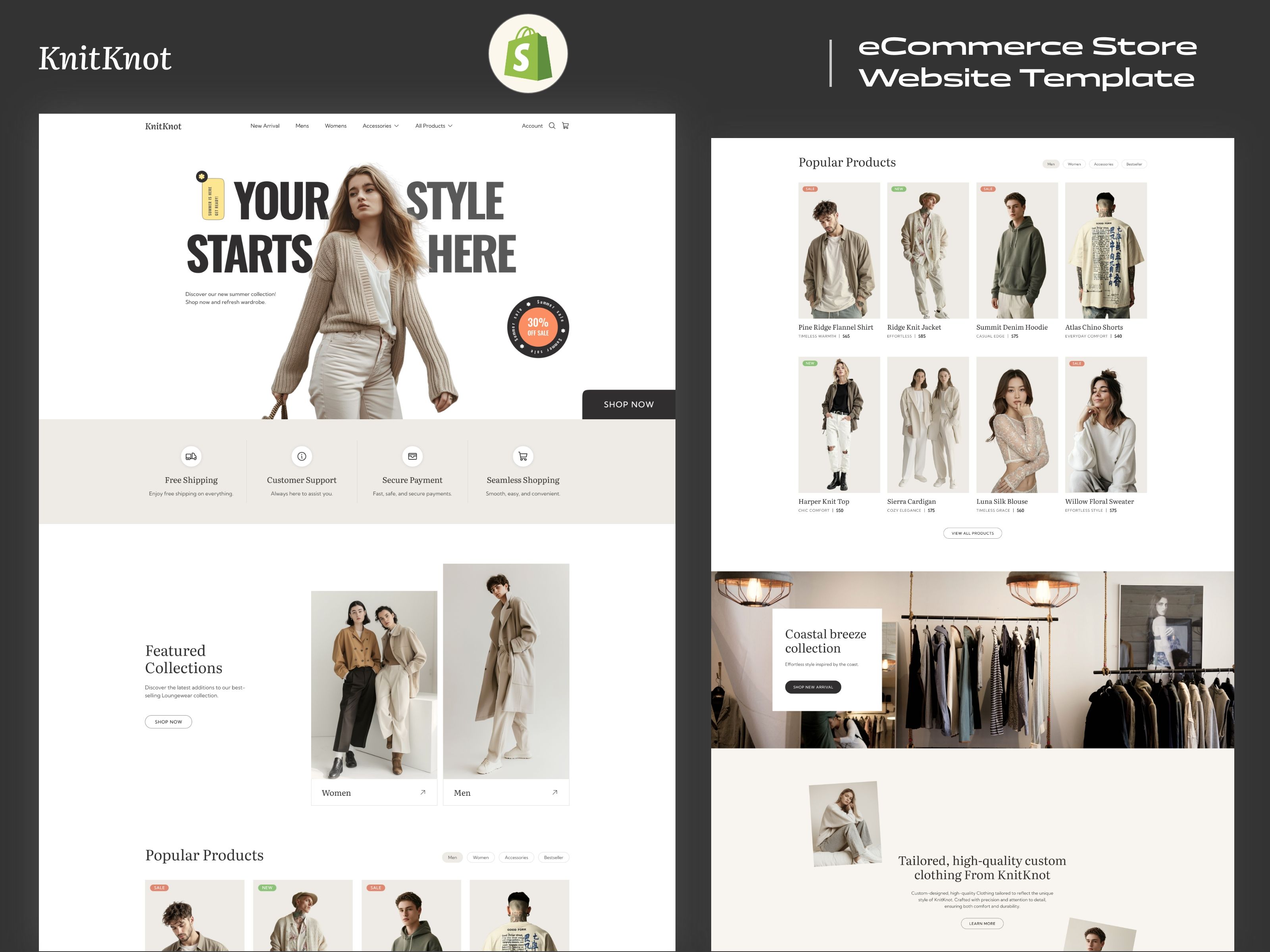 Say goodbye to clunky online stores. KnitKnot is a sleek, modern eCommerce template built on Framer and Shopify, crafted for brands that want their online presence to feel just as premium as their products. With fast load times, elegant design, and seamless functionality, it’s everything your store needs (and nothing it doesn’t). From browsing to checkout, your customers get a smooth, intuitive experience. And for you? It’s easy to customize, quick to launch, and built to grow with your brand. KnitKnot is design-first, conversion-focused, and made to help your business stand out in a sea of sameness. Pages: Home Page x 2Our Story PageShop PageProduct PageCollections PageBlog PageTestimonials PageContact Page404 Error PageTerms and ConditionsShipping and ReturnsRefund Policy:All digital sales are final, and refunds are not available. Ensure you’ve reviewed the product details, and feel free to ask any questions before purchasing.Exclusive Offer:Get 3 months of Framer Pro (annual plan) free with your template purchase. Use the provided discount code when subscribing to a Framer pro plan. partner25proyearlyPreview HereRefund Policy