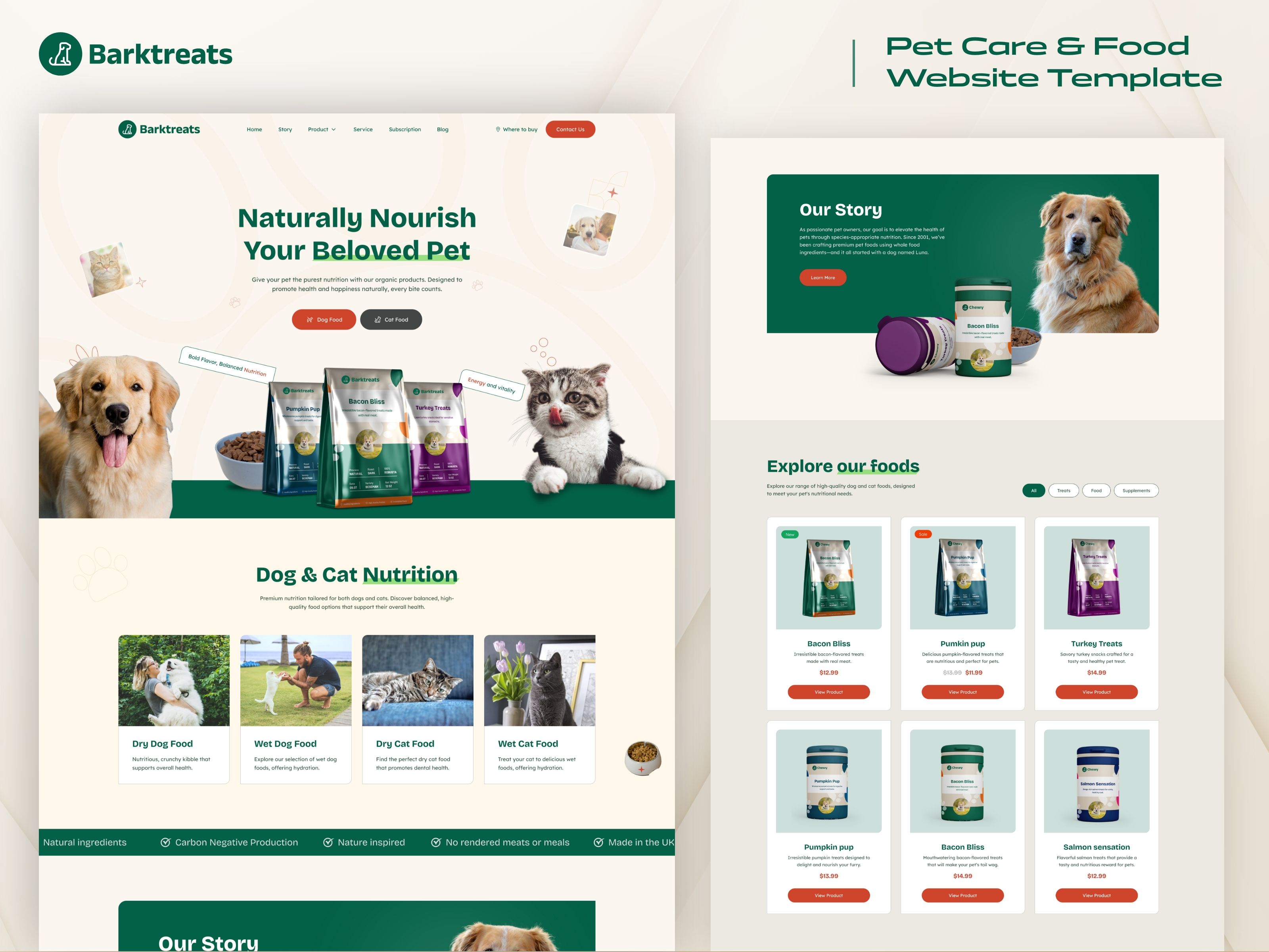 Bartreats: Pet Care & Food Template is the perfect solution for pet-related businesses looking to launch a professional and user-friendly website. Built on Framer, this template offers a clean and modern design, with all the essential features you need to showcase pet care products, services, and food options. Barktreats's vibrant, pet-centric design doesn’t just look good—it’s functional too. Whether you're running a pet store, offering grooming services, or managing a pet food brand, Chewy is designed to help you connect with your audience and drive sales. With fully responsive layouts that adapt beautifully to any screen size, your customers can easily shop, book services, or read helpful pet care tips from any device, ensuring their experience is as smooth as a pup’s fur after a grooming session. From product galleries and service descriptions to a blog for pet care tips, this template has everything to engage your customers and boost your online presence. Perfect for eCommerce product catalogs and subscription-based businesses. Pages: Home PageStory PageServices PageProducts PageServices PageSubscription PageTestimonials PageBlog PageFAQ PageContact PageStyle Guide404 Error Page Refund Policy:All digital sales are final, and refunds are not available. Ensure you’ve reviewed the product details, and feel free to ask any questions before purchasing. Exclusive Offer:Get 3 months of Framer Pro (annual plan) free with your template purchase. Use the provided discount code when subscribing to a Framer pro plan. partner25proyearlyPreview HereRefund Policy