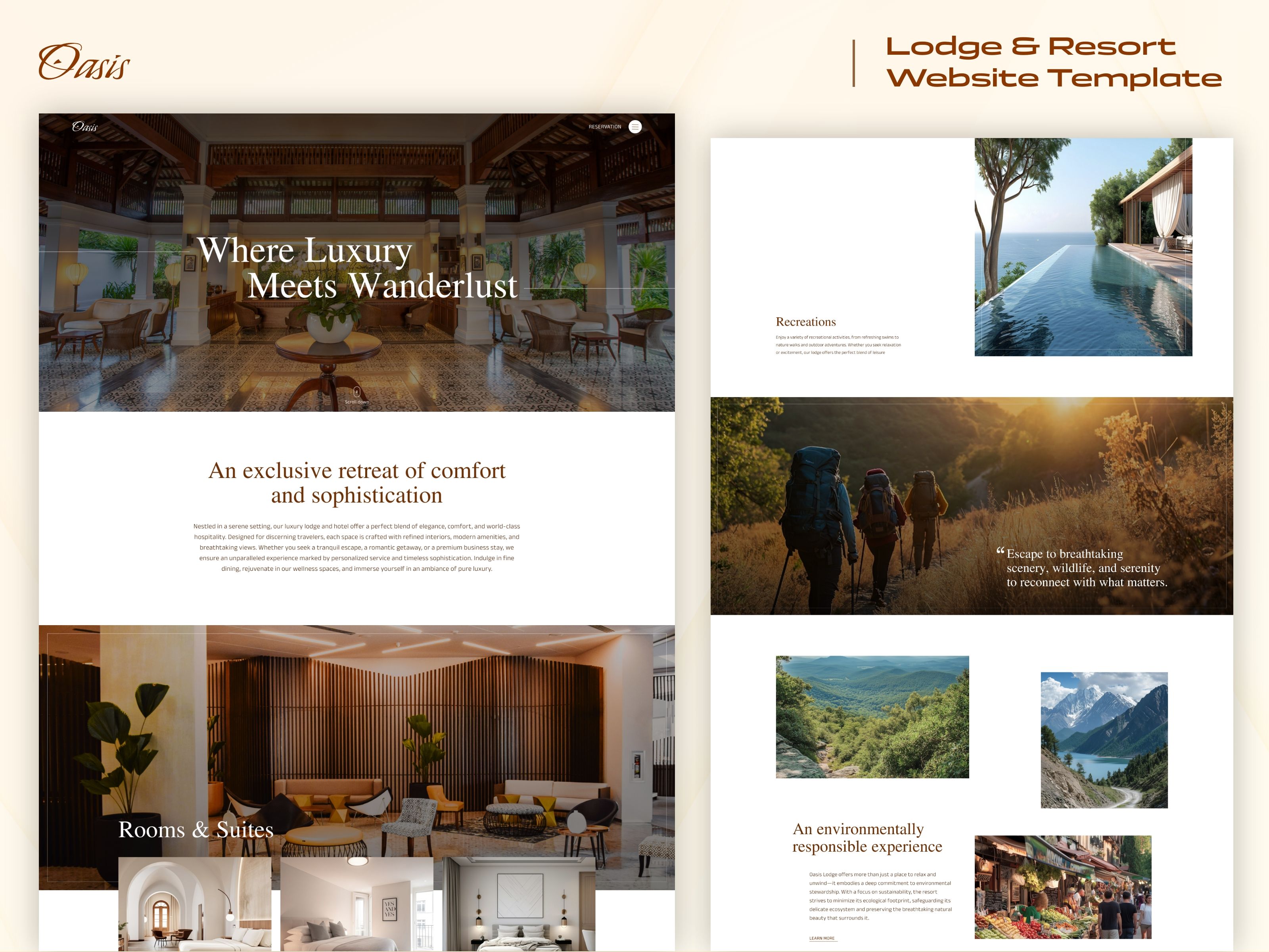 Oasila is a high-end Framer template designed for lodges, boutique resorts, and retreats that want more than just a pretty website—it’s built to convert visitors into bookings. With immersive visuals, bold layouts, and clear calls to action, Oasis lets you showcase your rooms, features, and guest experiences in a way that feels just as memorable as your stay. From stunning hero sections to experience-focused pages, every detail is crafted to highlight what makes your lodge special, whether it’s spa treatments, outdoor adventures, or world-class dining. Built on Framer CMS, it's easy to update content, manage rooms, and promote offers—without touching a single line of code. Fully responsive, lightning-fast, and optimized for SEO, Oasis helps you stand out online and drive more direct bookings. If you’re ready to make your resort feel like a destination the moment someone lands on your site, Oasila is the template to get you there. Pages: Home PageAbout PageRooms PageExperiences PageReservation PageBlog PageContact Page404 Error PageRefund Policy:All digital sales are final, and refunds are not available. Ensure you’ve reviewed the product details, and feel free to ask any questions before purchasing.Exclusive Offer:Get 3 months of Framer Pro (annual plan) free with your template purchase. Use the provided discount code when subscribing to a Framer pro plan. partner25proyearlyPreview HereRefund Policy