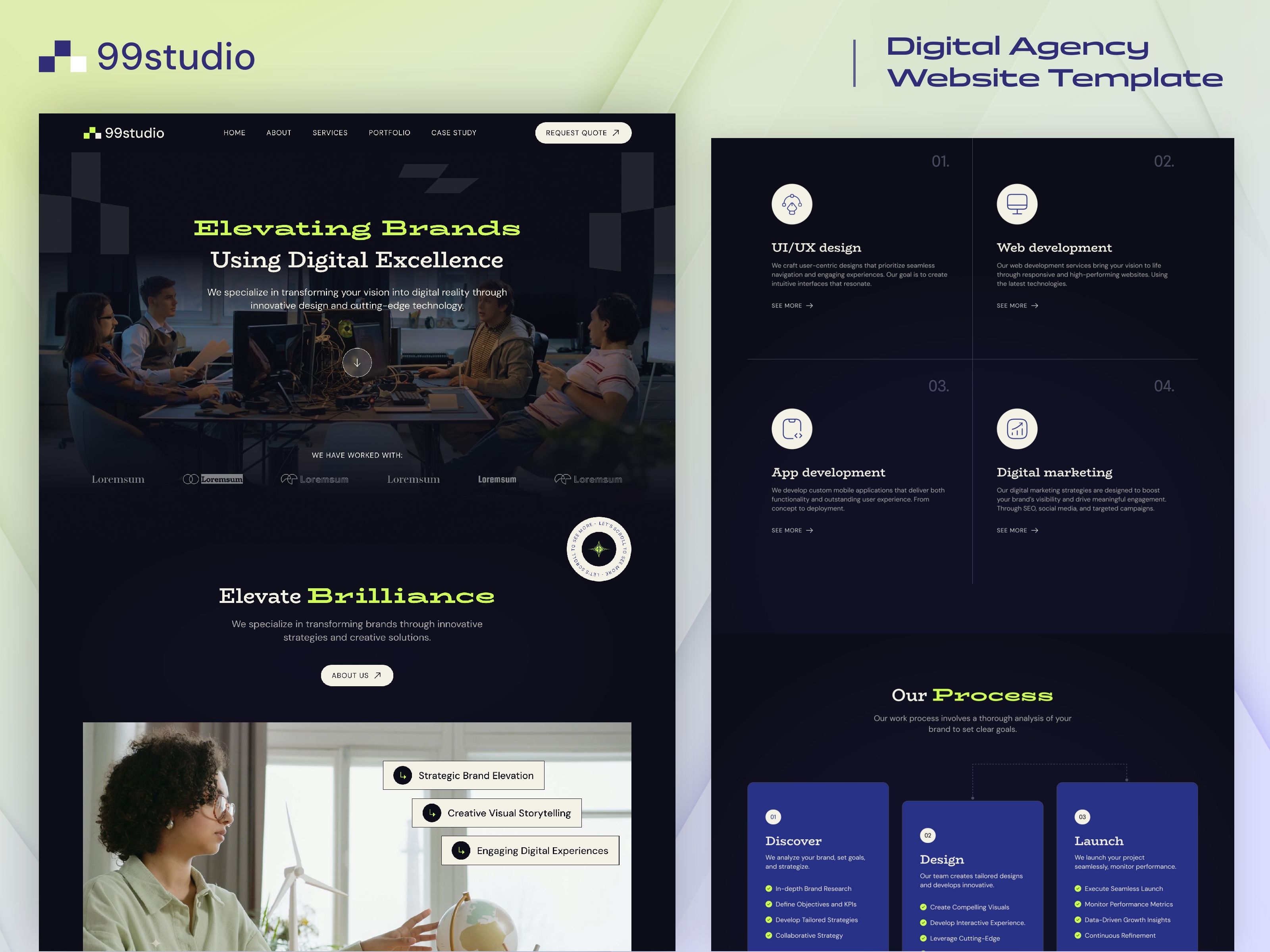 Meet 99Studio - Digital Agency Framer Template: the ultimate tool for modern agencies looking to captivate and convert. Designed from the ground up, 99Studio combines sleek, eye-catching style with a layout that effortlessly guides visitors through your story. It’s all about clean lines, bold visuals, and just the right touch of animation to create a memorable first impression. With easy-to-customize features, you can make 99Studio truly yours in minutes—adjust colors, fonts, and layouts to match your brand. And don’t worry about how it looks on mobile; this template is fully responsive and optimized for any screen. Every section is built to drive action, so your agency can stand out, build trust, and turn clicks into clients. Elevate your online presence with 99Studio and show the world what your agency can do! Pages: Home PageAbout PageServices PageServices Landing PagePortfolio PageCase Study PageCase Study Landing PagePricing PageFAQ PageContact Page404 Error PageStyle Guide PageRefund Policy:All digital sales are final, and refunds are not available. Ensure you’ve reviewed the product details, and feel free to ask any questions before purchasing.Exclusive Offer:Get 3 months of Framer Pro (annual plan) free with your template purchase. Use the provided discount code when subscribing to a Framer pro plan. partner25proyearlyPreview HereRefund Policy