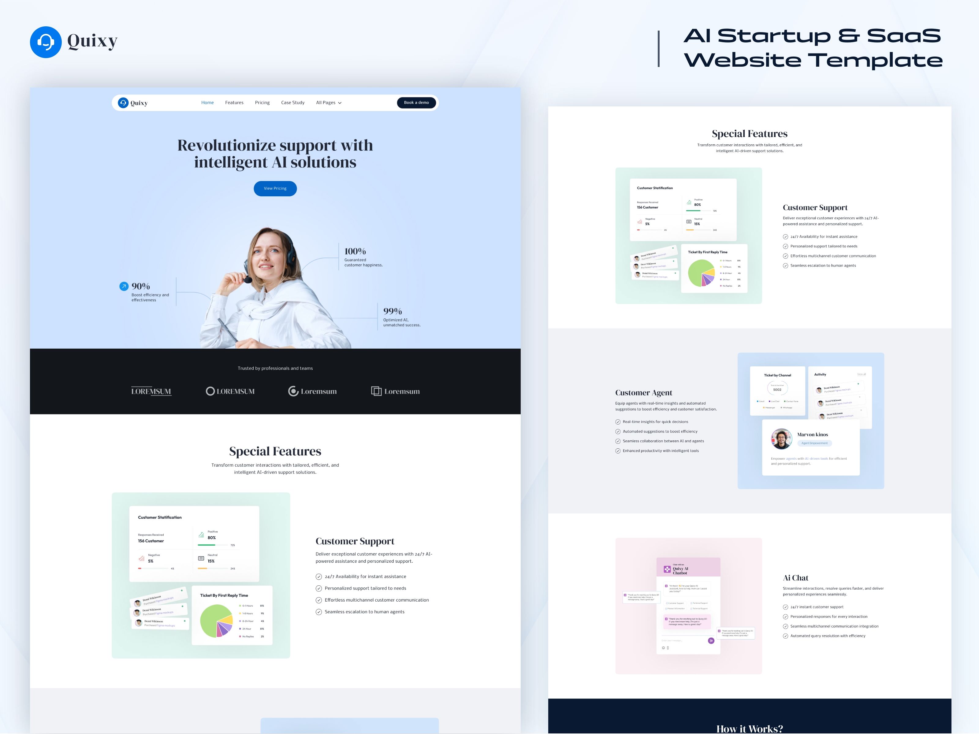 Elevate your AI startup or SaaS business with Quixy, a sleek and sophisticated Framer template designed for innovation-driven brands. With a modern aesthetic, seamless user experience, and intuitive layouts, Quixy empowers you to create a high-impact website that captivates your audience and amplifies your brand. Crafted for speed, responsiveness, and effortless customization, Quixy ensures your site looks flawless across all devices while delivering a smooth browsing experience. Whether you're launching a groundbreaking AI product or scaling your SaaS venture, Quixy provides the perfect foundation for a stunning, high-converting website—without the hassle. Pages: Home PageFeatures PagePricing PageCase Studies PageBook a Demo PageBlog PageFAQ PageContact PagePrivacy Policy, and Terms of Use Page404 Refund Policy:All digital sales are final, and refunds are not available. Ensure you’ve reviewed the product details, and feel free to ask any questions before purchasing.Exclusive Offer:Get 3 months of Framer Pro (annual plan) free with your template purchase. Use the provided discount code when subscribing to a Framer pro plan. partner25proyearlyPreview HereRefund Policy