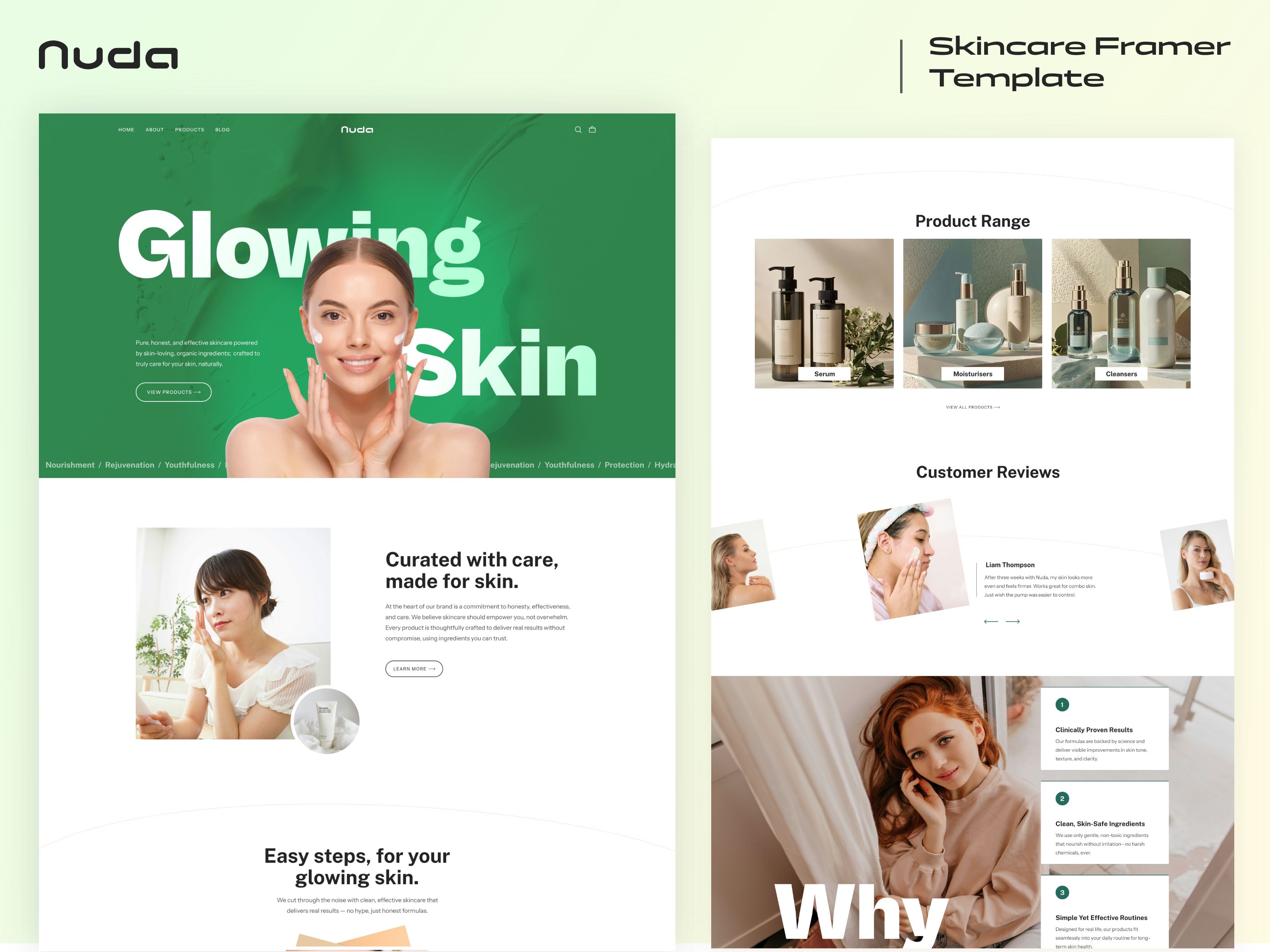 Discover Nuda, a premium Framer eCommerce template designed to bring your skincare brand to life with elegance and clarity. Seamlessly integrated with Shopify, Nuda makes it effortless to showcase your products in a way that builds trust and sparks desire. Every section is crafted to highlight your formulas, benefits, and brand story—transforming casual visitors into loyal customers. With clean layouts, smooth animations, and a luxury aesthetic, Nuda gives your products the stage they deserve while making shopping simple, fast, and enjoyable. In today’s competitive beauty market, presentation is everything. Nuda is more than just a template—it’s your brand’s digital storefront built to convert. From persuasive product pages to lifestyle-driven visuals, it’s strategically optimized to inspire purchases and boost revenue. Whether you’re launching a new skincare line or scaling an established brand, Nuda helps you create an immersive shopping experience that builds credibility, increases customer confidence, and ultimately drives more sales. Pages: Home PageAbout PageShop PageProducts PageBlog PageContact PagePrivacy Policy Page404 Error PageRefund Policy:All digital sales are final, and refunds are not available. Ensure you’ve reviewed the product details, and feel free to ask any questions before purchasing.Exclusive Offer:Get 3 months of Framer Pro (annual plan) free with your template purchase. Use the provided discount code when subscribing to a Framer pro plan. partner25proyearlyPreview HereRefund Policy